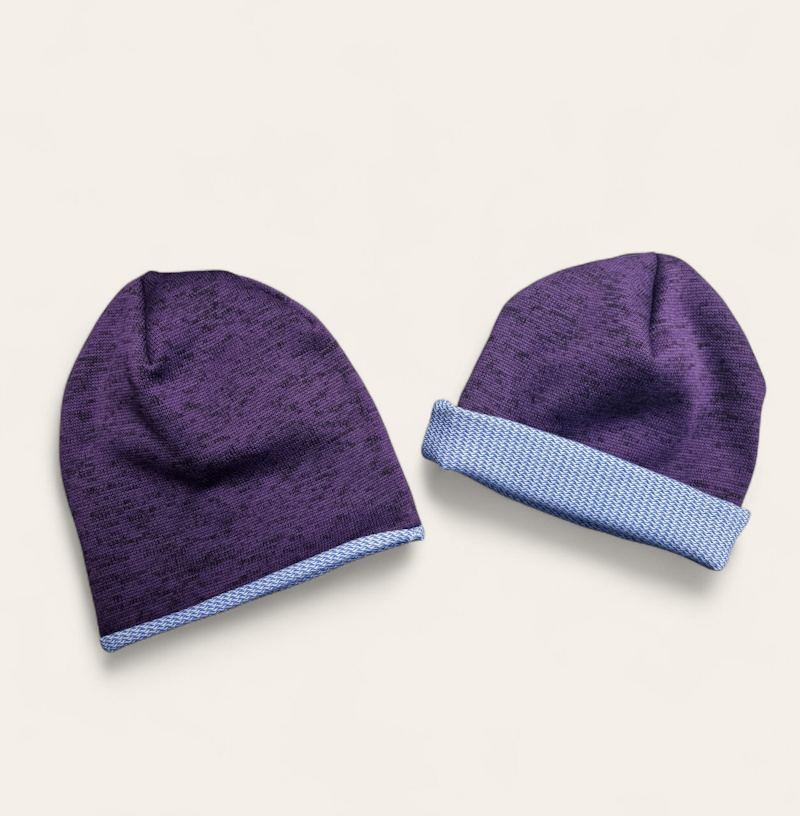 Mützen in verschiedenen Größen und doppellagig. Innen ist ein Jersey eingenäht.